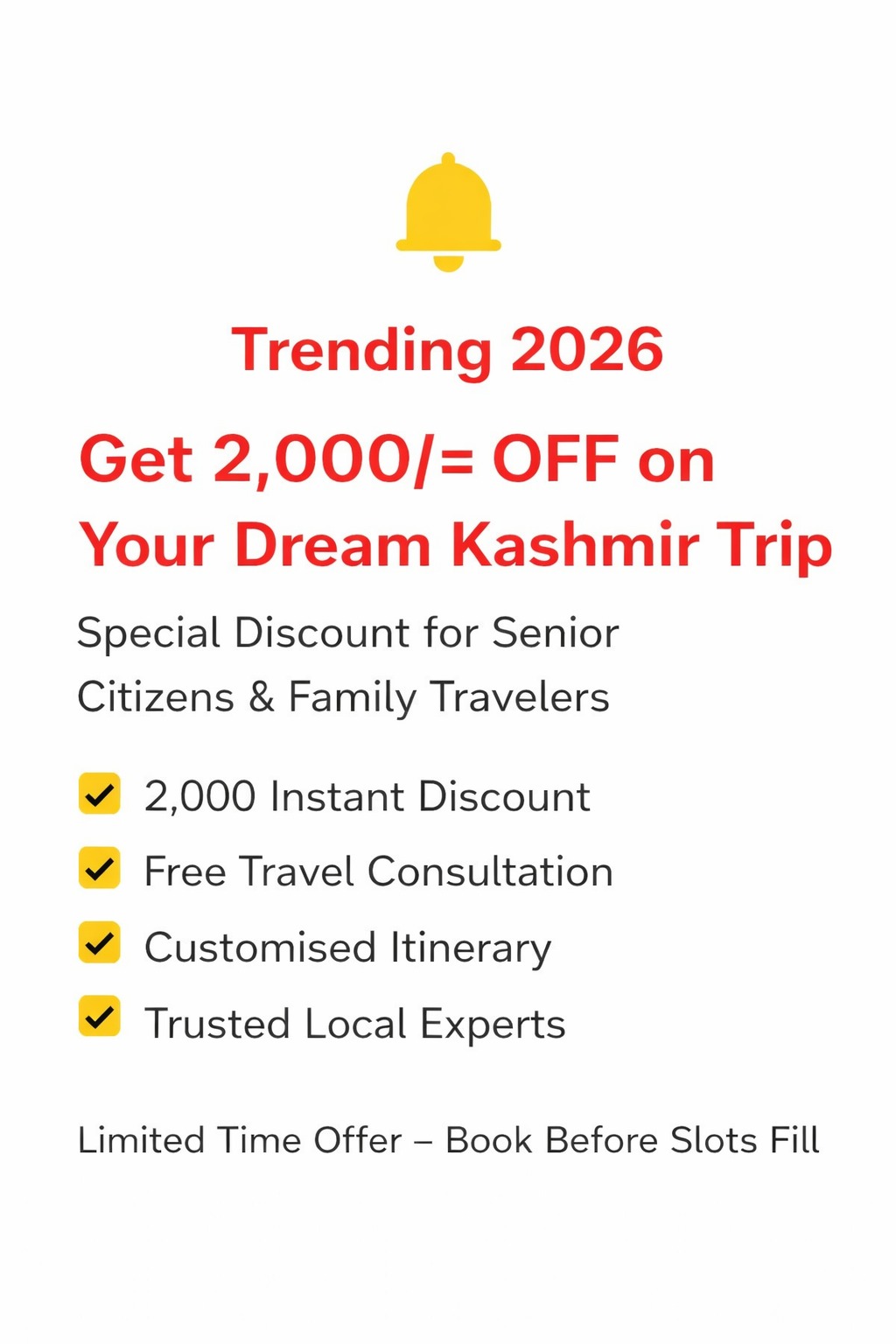 Best Kashmir Tour Package crafted with top tour and travel agency of Srinagar Kashmir, The local expertise and kashmir tour package specialist with safety, and sustainability—offering authentic, memorable travel experiences across Jammu & Kashmir.